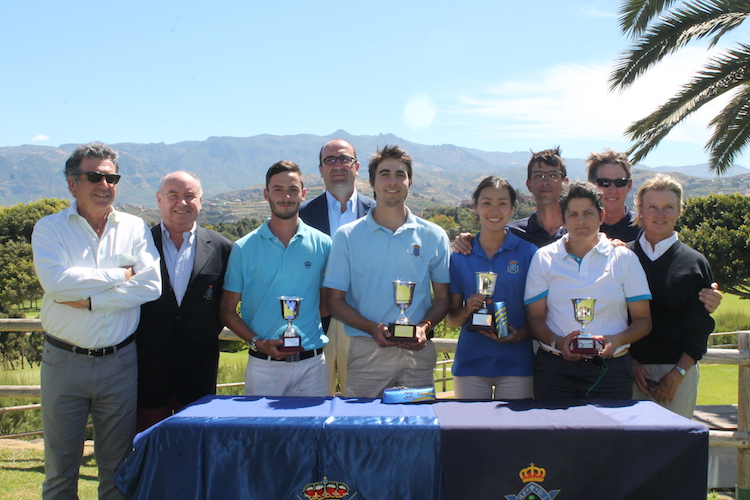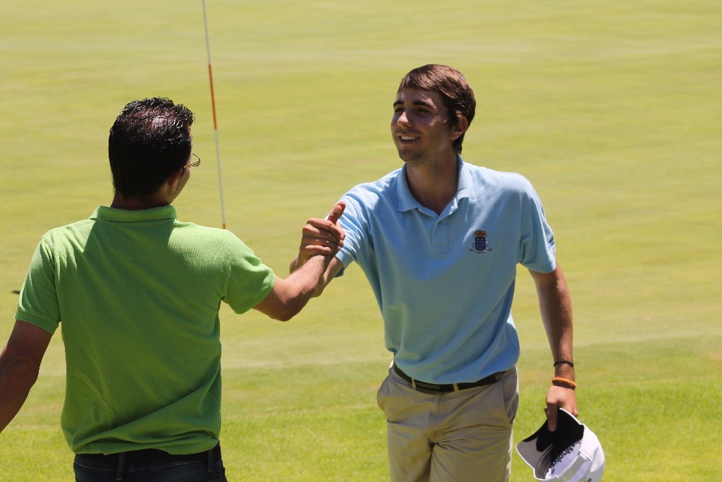 El primero cursa su primer curso de estudios universitarios en Estados Unidos y sigue mejorando su ya excelente golf. Empezaba el viernes en el Real Club de Golf de Las Palmas con 68 golpes, seguidos de una tarjeta de 70 que le daban el liderazgo por 5 de diferencia sobre Pedro Urriza. Ayer las cosas se le complicaban al principio pues sumaba mas bogeys de los que había hecho entre los dos días precedentes - 4, 5, 7, 8, 10 - pero sabía ordenarse y en el 9 hacía birdie, junto a dos mas en los hoyos 13 y 16 evitando que sus directos rivales atacaran su liderazgo. Sonreía al meter su último putt en el 18 y saberse ganador del mayor entorchado canario, recibiendo su copa en el reparto de premios que se celebraba pocos minutos después de manos de Salvador Cuyás, Presidente del Club. Gran torneo de Pedro Urriza quien ha quedado segundo con 218 golpes (73, 70, 75), sabiendo tomar las riendas de su juego en los segundos 9 de ayer pues se le habían complicado los de ida, haciendo birdies en 12, 13 y 16 para no darle opciones ni a Pablo Montesdeoca por el segundo puesto (220=78, 71, 71) ni a Jaime Suárez ( 222=77, 74, 71), quienes finalmente eran tercero y cuarto por este orden en la clasificación general.