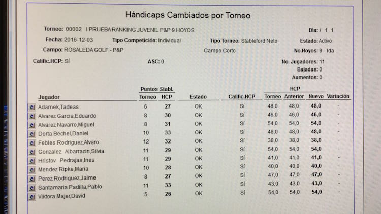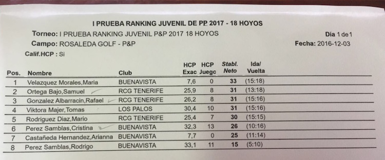 RESULTADOS de la I Prueba del Ranking Juvenil de P&P Provincia deTenerife 03 de diciembre de 2016 en La Rosaleda: