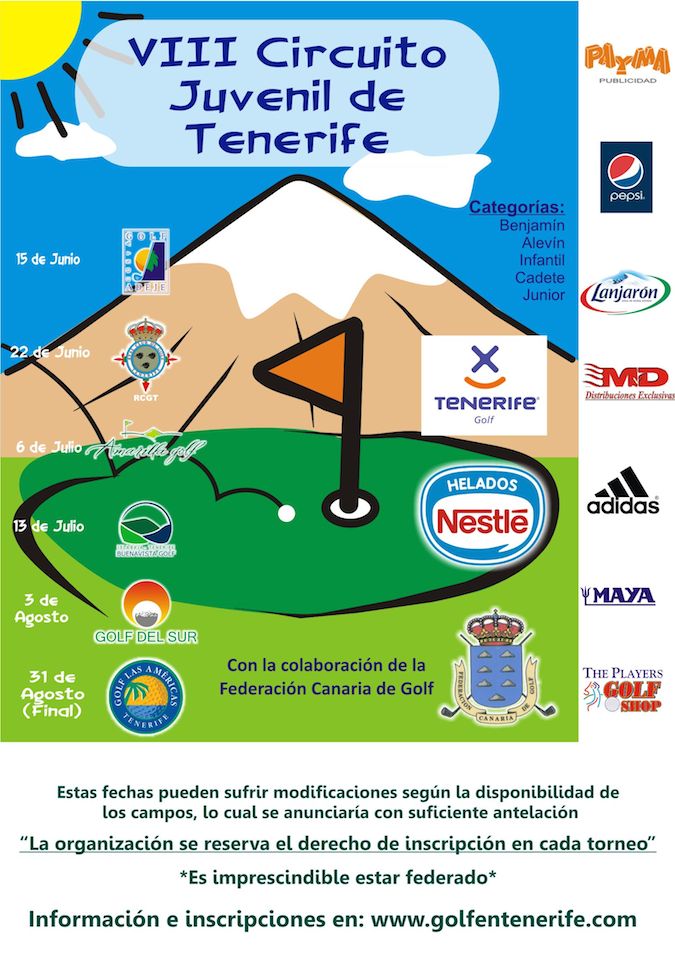 El circuito, auspiciado por Tenerife Golf y con la colaboración de la Federación Canaria de Golf, consta de seis pruebas, empezando por la del próximo 15 de junio en Golf Costa Adeje. La última cita, la final, se disputará el próximo 31 de agosto en Golf Las Américas. Entre medias, los protagonistas más jovenes del golf regional visitarán otros cuatro campos de la isla de Tenerife.